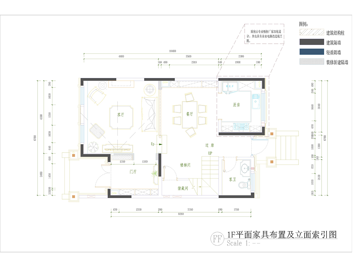 本案業主為年輕人,不喜歡過于復雜的家具,裝修風格以簡潔大方為主,整體色調上采用淺色調,使整個空間感覺更加明亮。業主居家辦公時間較多,在頂層臥室增加書房功能。