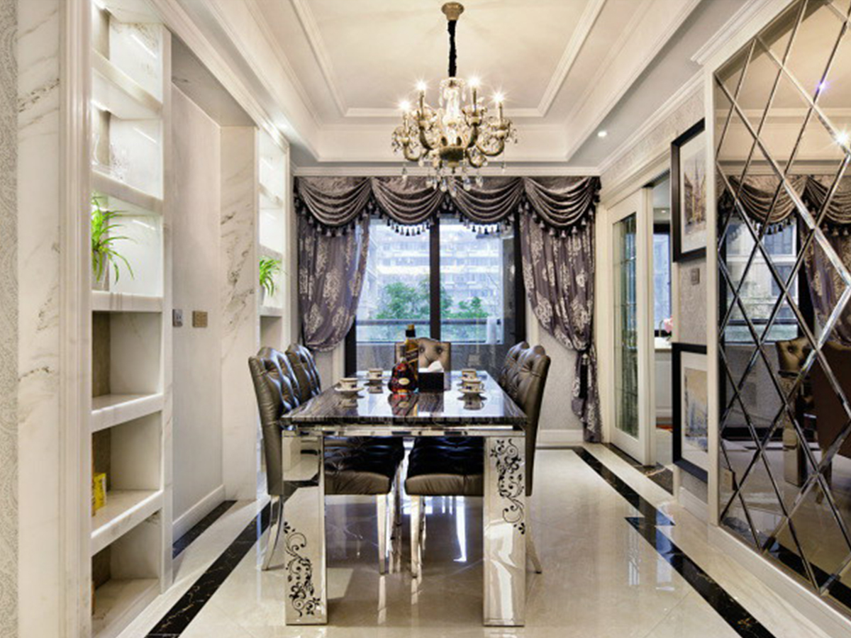因為整體的設計歸與簡潔明快,所以在客廳的這個空間區域中我運用了對比的手法,讓沙發和電視柜的顏色形成對比,視覺空間拉開,頂面石膏線的運用,使空間變得更富有層次。在主臥室的設計中我采用了暖色的木地板搭配皮質硬包的床頭背景墻,使房間具有溫馨的整體感覺