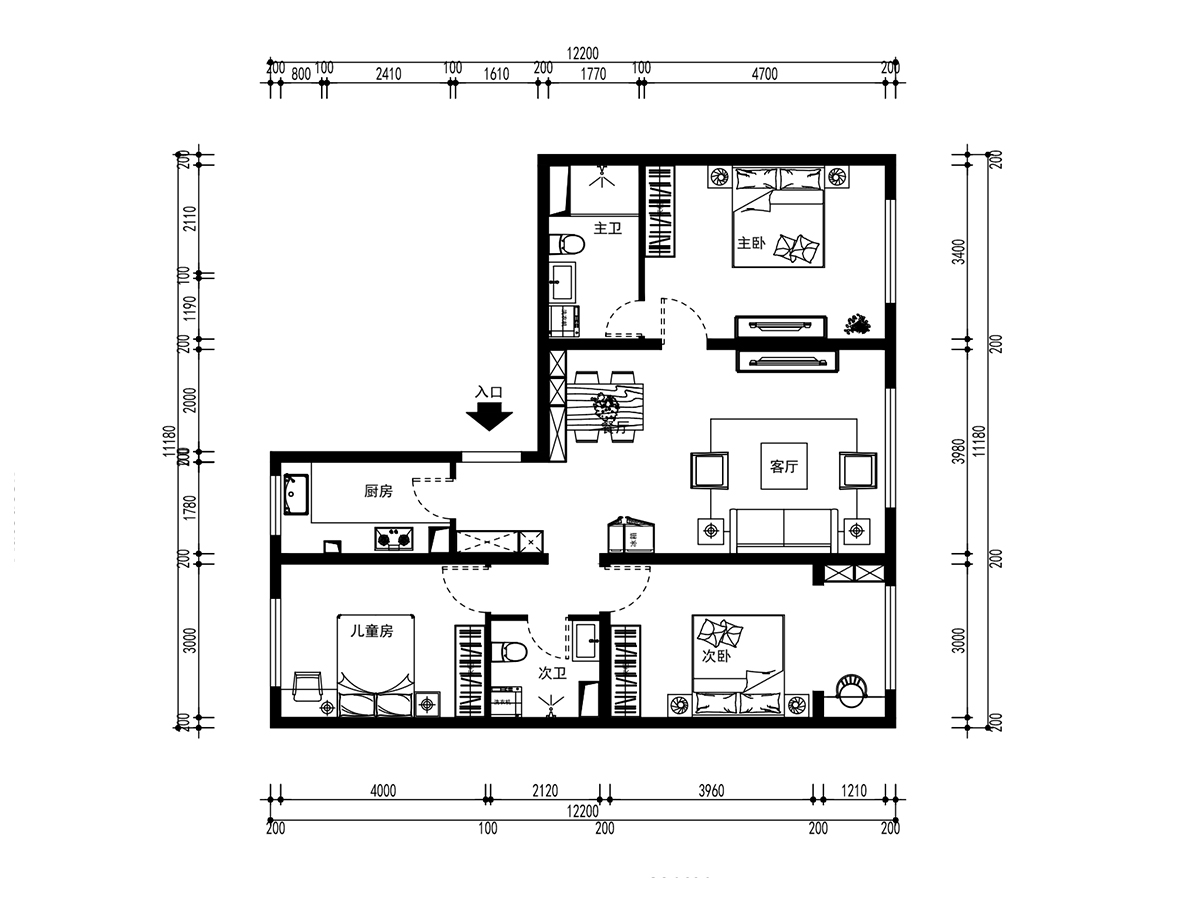 【梵客家裝】12萬精裝中式風(fēng)格三居室