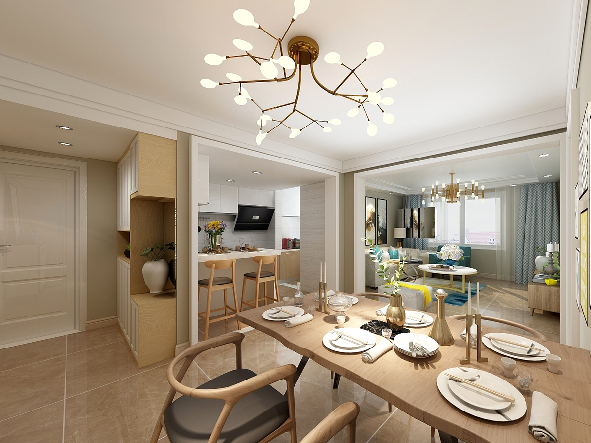 北歐風情在生活節奏迅猛的當代,蘊含千姿百態的生活樂趣,在整體設計中體現了不一樣風情。 客廳白色的文化石電視背景墻凹凸感強,簡潔明快。簡潔線條的電視柜,吊燈,線條明朗的沙發和配飾,它所呈現出來的是非常接近自然的原生態的美感。 餐廳左側的照片墻是,主人可以把喜歡的照片掛在墻上。邊柜加上黃色的裝飾畫墻面是整個空間充滿了溫馨的感覺。開敞式的廚房更是將采光照入用餐區。 開放式廚房,強調室內空間寬敞、內外通透,最大限度引入自然光,吧臺將用餐和備餐的樂趣合二為一,享受生活的點滴之美。 書房空間,更是將北歐與中國的水墨配飾畫品融入其中,文雅的書香氣迎面而來。