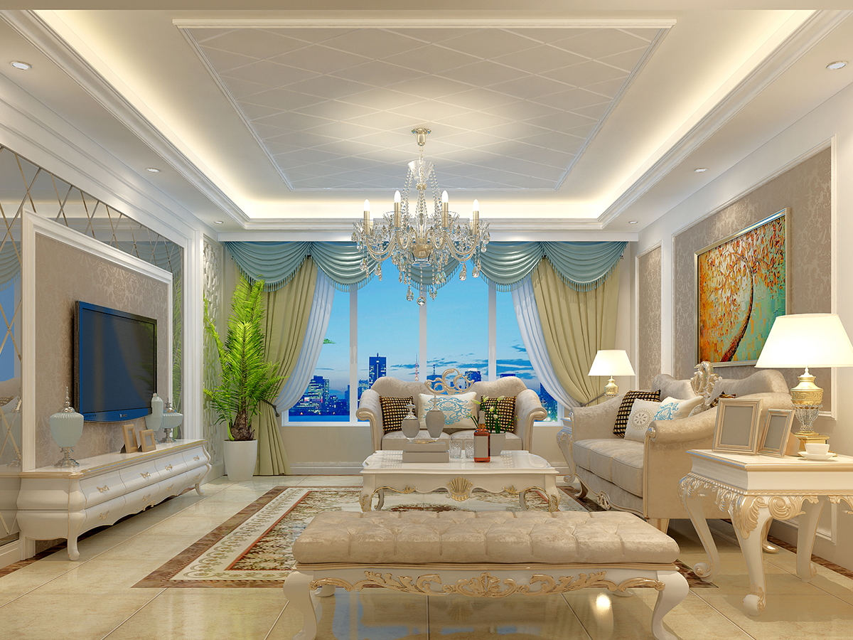 本設計方案采用歐式風格的表現手法,以繁華都市背景為寫照,而又遠離都市重金屬的感覺。讓您身臨其境卻沒有緊張、急切的心情,帶給您的是一種溫馨和諧的心情,讓心情感其愉悅,使人心曠神怡。再加上此戶型規矩方正,電視幕墻以簡單歐式造型來突出,簡潔而又不失高雅。章顯您高貴身份,給您帶來與眾不同的居住環境。