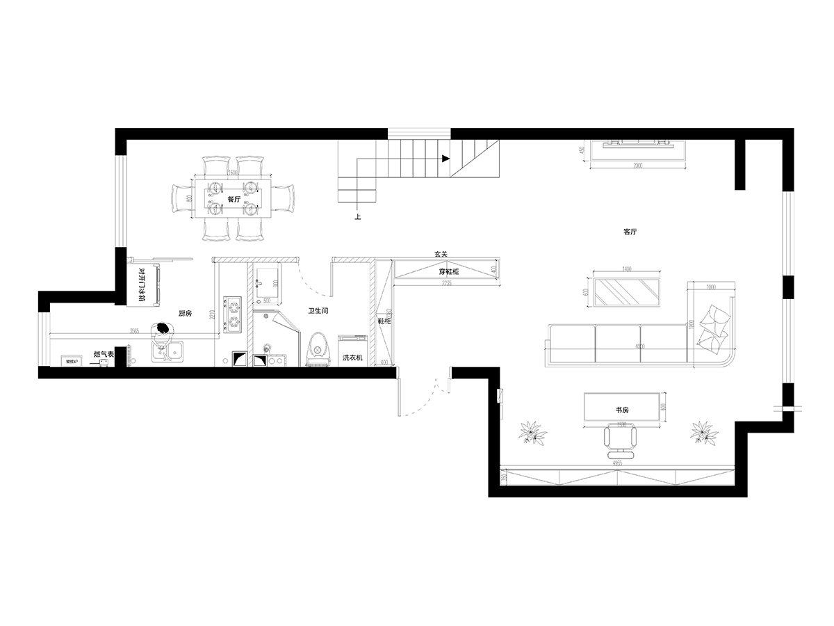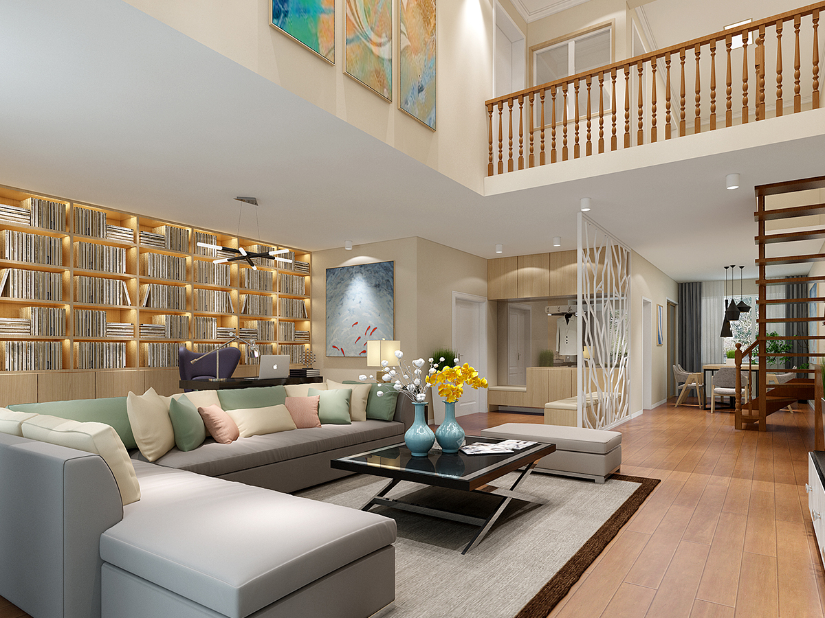 此戶型采用簡約的現代設計風格,因為原戶型除了外墻沒有格局布置,布局需要全部重新設計,在結構上進行改動,加建二層打造復式結構。后期在家具、配飾上做了精心的布置。客廳地面選用米黃色淺色玻化磚,讓居室現得干凈利落。墻面用筒燈的燈光渲染,給人一種朦朧的意境美。尤其是電視背景墻和掛畫,體現了現代低調的風格。整體風格莊重而不失溫馨。