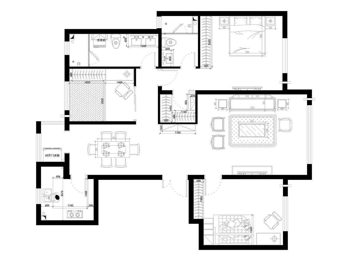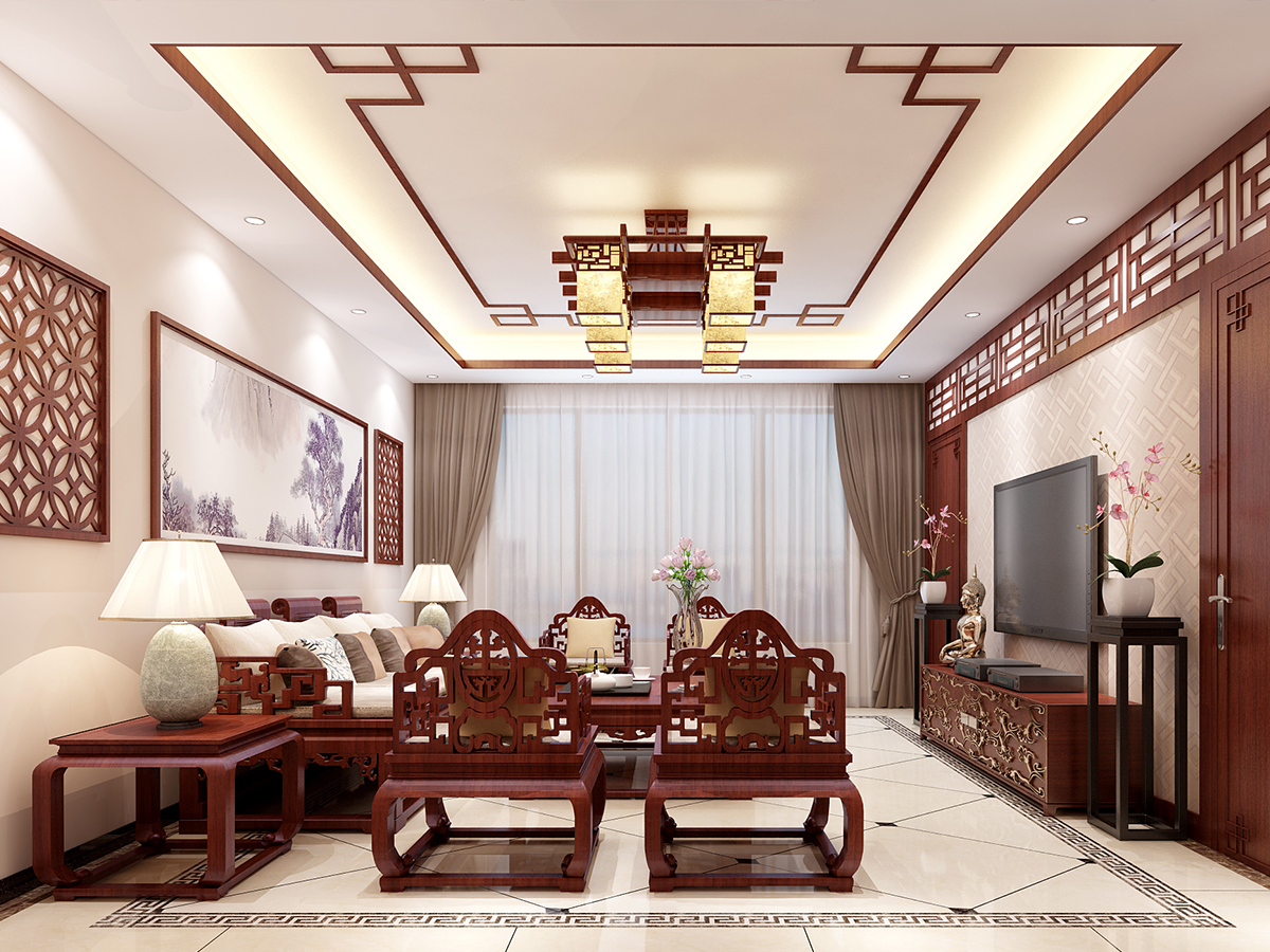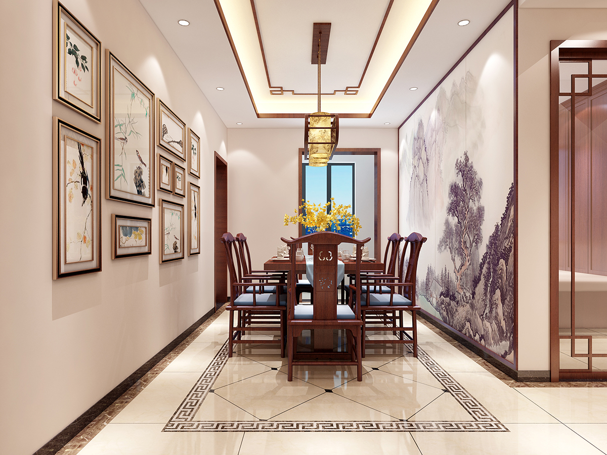 本案為中式古典,材質與顏色的選用以和諧為原則、無累贅冗余造型,溫馨的手法,保留中式風格所需要的必要的元素,在使用面積比例上推陳出新,結合配飾上力求指引居室的主人以輕松、愉快的狀態流連于居室營造的氣氛中??筒蛷d十分淡雅,這里沒有多余的色彩、布置和家具,沒有喧囂與繁冗,一派寧靜悠遠;設計將原本不規則且略顯零亂的天花加以簡化整合;設計采用傳統的入戶玄關門廳把客廳與餐廳兩個空間加以適當區分,形成一個隔而不斷,分而不離的互動空間,愜意的、時尚的、成功人士的品質生活體驗盡在其中。