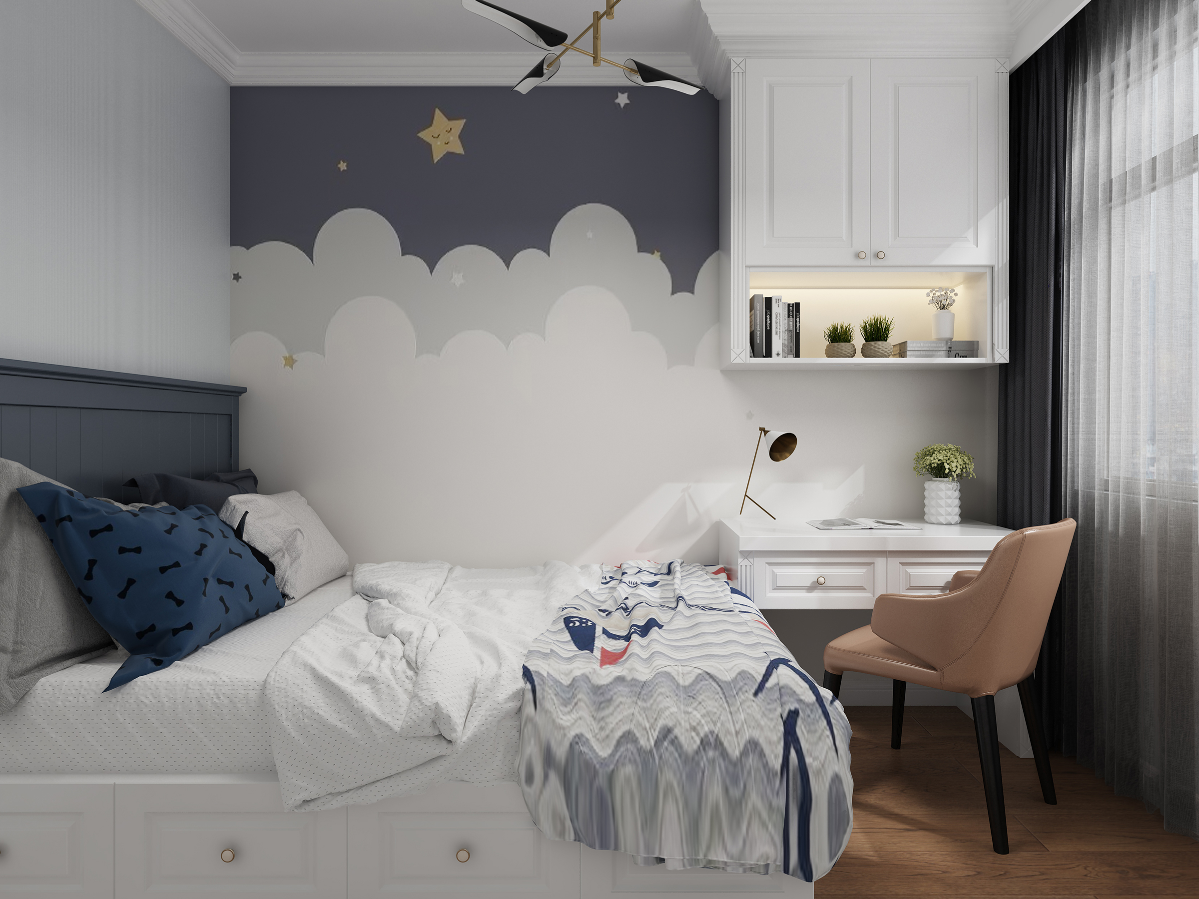 此戶型三居室,長期一個人居住,外孫會來住。所以三居室其中一間改造成了衣帽間。由于有一些舊家具要直接搬過來,所以整個設(shè)計墻體改動較多。