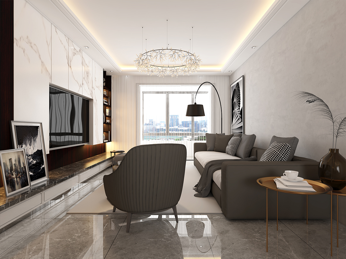 現(xiàn)代的黑白灰,給人沉寂的感覺。在繁華的都市生活中讓人的心靈上得到更好的慰藉。本案在色彩上采用無彩色為主,以黑白灰為主色。在光與影的體感中尋找空間的層次感