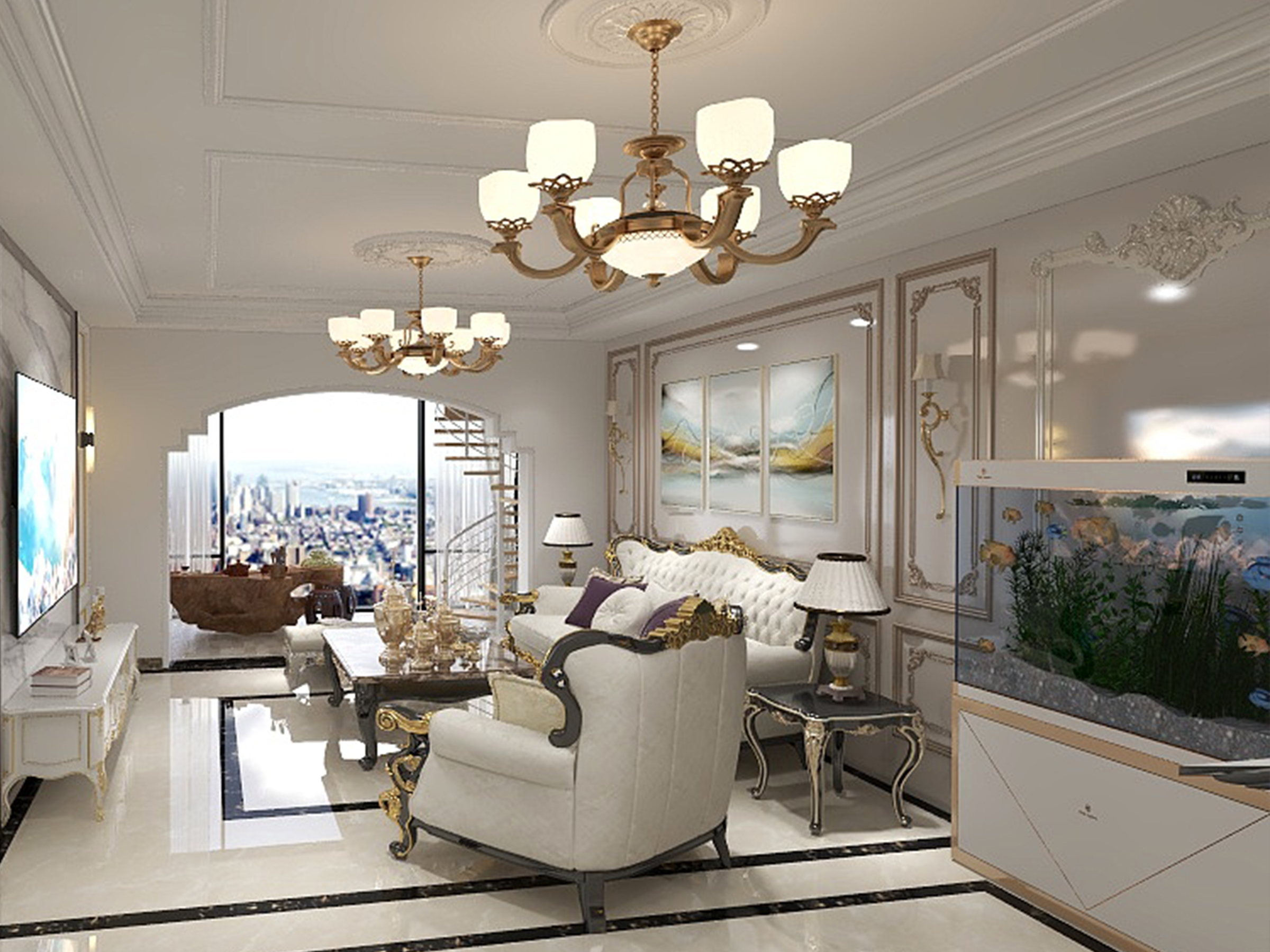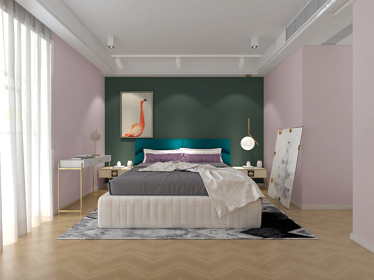 全屋以米色,深咖與胡桃木進行調和配色,同時通過色彩與材質的碰撞,體現古典與現代的交叉融合。 客廳的整體以淺色的乳膠漆配上深色的木材為主,讓視覺上有一個強烈的對比,背景墻用墨色掛畫做點綴,再配上新中式的軟裝,整體看上去非常的大氣有格調。 兒童房側面衣柜滿足孩子的衣服收納,書桌上面做置物架方便書記收納擺放,提高空間 的利用率,柜門無拉手設計,更加簡潔干凈,藍色的跳色使空間有趣富有特性。 在材質的選擇上除了傳統的天然木材,也運用了現代材料如金屬、皮革、玻璃等,以求創造出自然優雅質樸的氛圍。