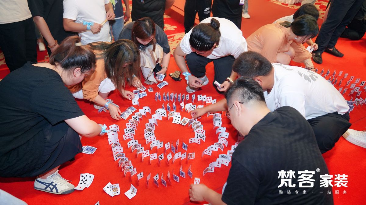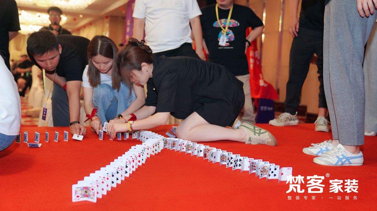 第二個項(xiàng)目是紙牌多米諾,這里更需要智慧,以及心態(tài)的平穩(wěn)和冷靜的性格。紙牌多米諾存在于一個相互聯(lián)系的系統(tǒng),驚動一張紙牌,會產(chǎn)生一系列連鎖反應(yīng),由此導(dǎo)致失敗。參賽者還要極度地細(xì)心,對注意力、專注度、耐心都有較高要求。梵客家裝的小伙伴們依然不負(fù)眾望,取得了優(yōu)異的成績。