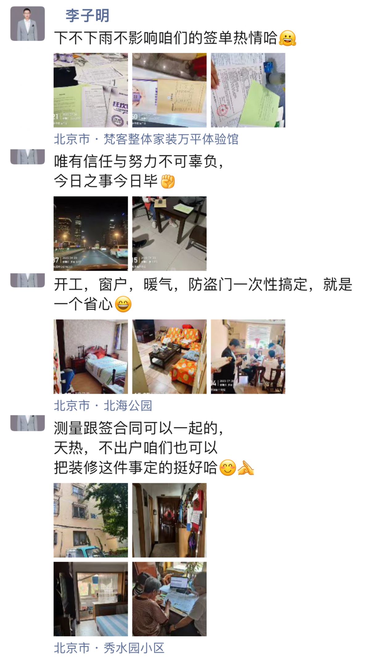 刮風下雨、嚴寒酷暑,或者遇到緊急事件,業(yè)主無法到店簽約,設計師便會上門服務。即便前期測量階段,量房至深夜,設計師也會盡心盡職,做好職能工作,全心服務業(yè)主。