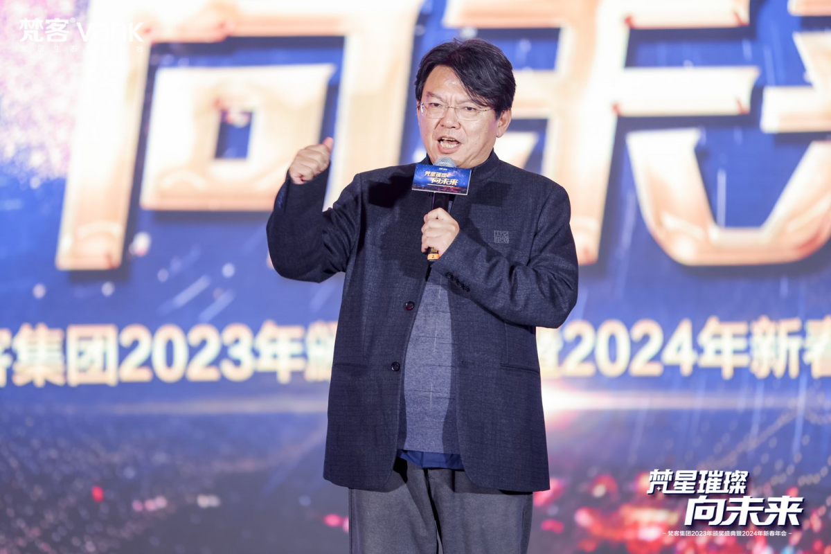 “在這美好的日子迎來了梵客集團(tuán)2024年年會,首先祝大家新年快樂!在過去的2023年,市場面臨很大挑戰(zhàn),但是在梵客人的辛勤努力下取得了業(yè)績翻倍的成績。相信在大家的支持下,2024年梵客依然會取得更大的成績,實(shí)現(xiàn)業(yè)績再次翻倍的目標(biāo)…”