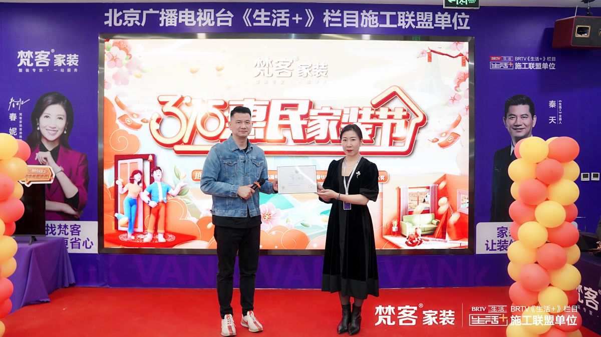 梵客集團(tuán)副總裁、梵客家裝總經(jīng)理任琳女士與北京廣播電視臺(tái)《生活+》欄目主持人秦天老師,一起為大家展示了這一殊榮。