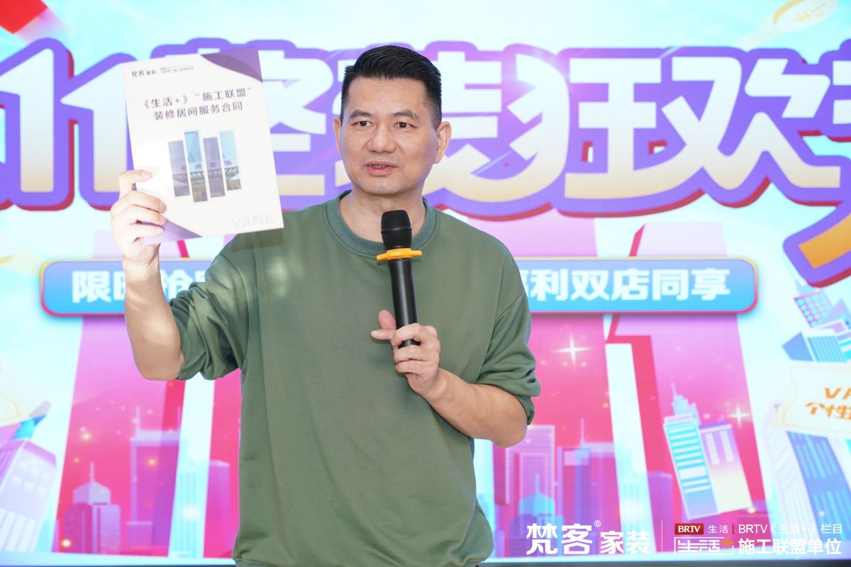 這么重要的活動,自然少不了梵客家裝的老朋友、北京廣播電視臺《生活+》欄目的主持人秦天老師。熟悉梵客的人都知道,只要秦天老師到,肯定是來送福利的。這次,他帶來的是《生活+》施工聯盟協議。梵客家裝多年來都是北京廣播電視臺《生活+》欄目的施工聯盟單位、指定施工單位,這是通過每年層層篩選獲得的,是梵客實力與口碑的證明。此項協議,為準備裝修的業主朋友提供了多一層保障。