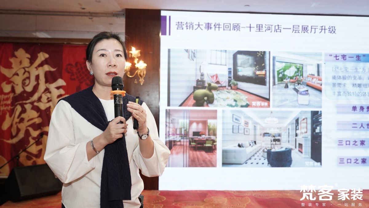 大會(huì)在梵客集團(tuán)副總裁/梵客家裝總經(jīng)理任琳女士的致辭下開(kāi)幕。梵客家裝自去年年底至今年年初,經(jīng)歷了一系列大動(dòng)作,先后簽約演員王麗云、韓童生作為品牌推薦官,大大提升了品牌實(shí)力及影響力;十里河店店面也進(jìn)行了全新升級(jí),不僅融入七宅一生樣板間,家具、布藝、燈飾等軟裝區(qū)也重新規(guī)劃并引進(jìn)新品,為用戶帶來(lái)更豐富多樣的選擇。梵客家裝成立十八年,深耕專業(yè),在產(chǎn)品研發(fā)、店面改造、品牌宣傳等方面不斷探索、創(chuàng)新,只為給京城百姓帶來(lái)滿意的家裝服務(wù),享受舒適美好的家居新生活。