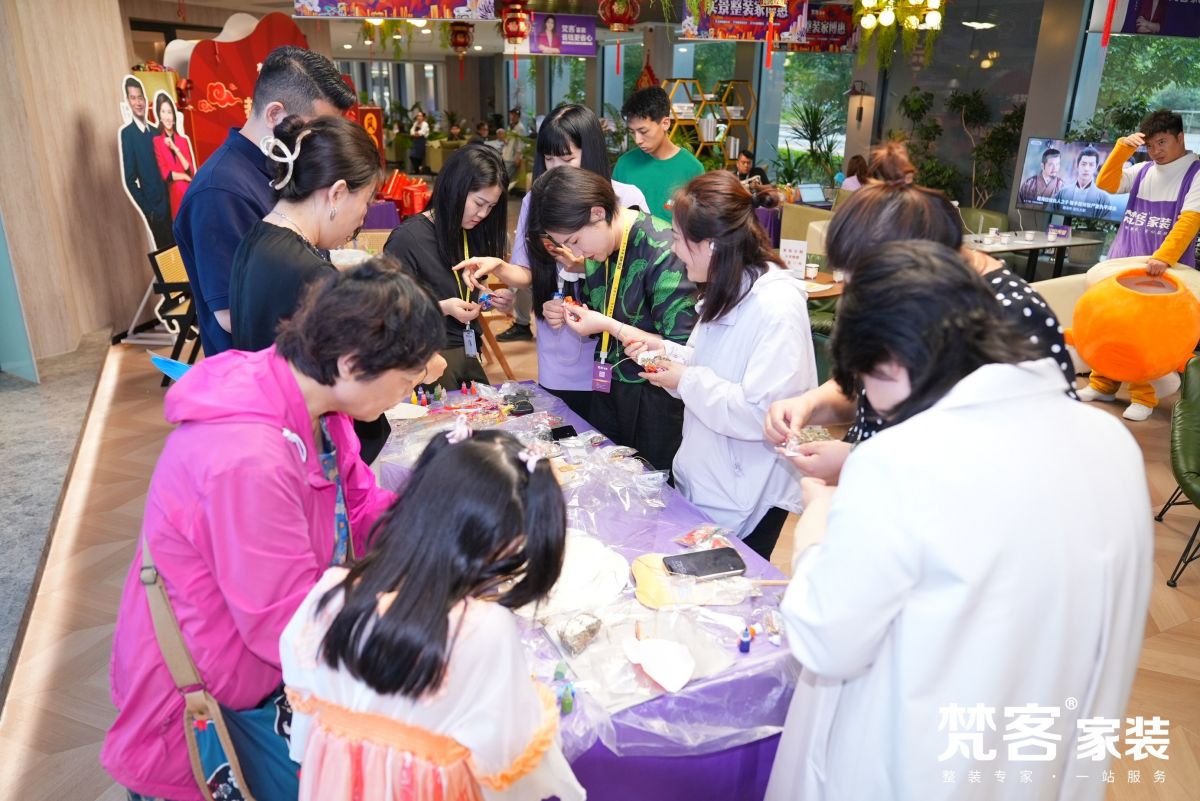 這個周末,梵客實景整裝家博惠收官日正好與端午/六一相不期而遇,游戲活動也是豐富多彩。梵客的家人們帶著業主包起了錦囊,現場一片歡聲笑語。梵客集團副總裁/梵客家裝總經理任琳女士、秦天老師也積極投入到手工活動中,大家玩得不亦樂乎。
