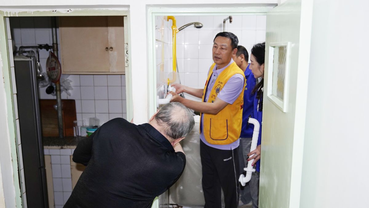 另一位老人是中國人民志愿軍二十三軍七十三師抗美援朝元老的家屬。他們家生活空間狹小,特別是洗手間,因為年邁及腿腳不便,馬桶坐起時非常吃力。志愿團為老人的洗手間安裝了固定在墻上的L型扶手,坐下起身時都能借助到力,大大提高了老人如廁的安全度及方便度。