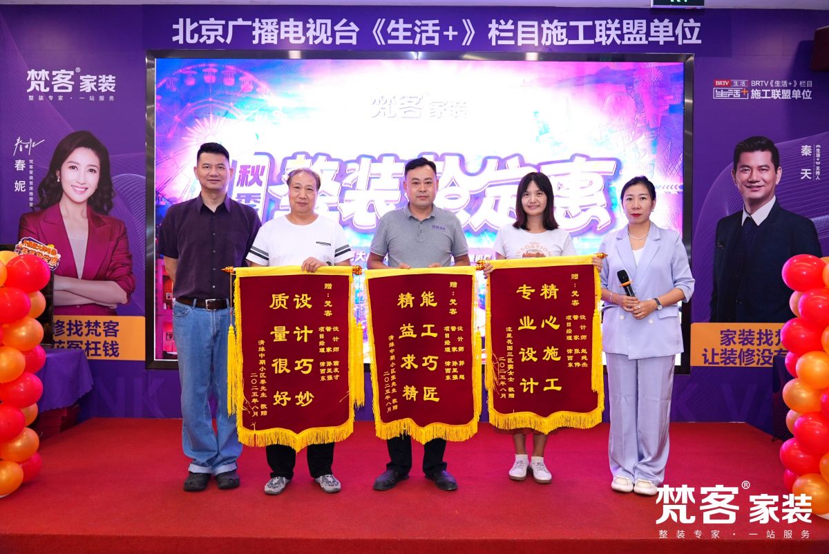這么重要的時刻,自然少不了梵客家裝的老朋友、北京廣播天電視臺《生活+》欄目的主持人秦天老師的到來,他為大家?guī)砹艘槐尽渡?》施工聯(lián)盟協(xié)議。北京廣播電視臺《生活+》欄目為規(guī)范裝修市場,專門成立了施工聯(lián)盟,為老百姓選靠譜裝修公司把關(guān)。梵客家裝一直是其施工聯(lián)盟單位、指定施工企業(yè)。活動期間,在梵客簽約的業(yè)主朋友都會收到《生活+》施工聯(lián)盟協(xié)議,為裝修多了一層保障。