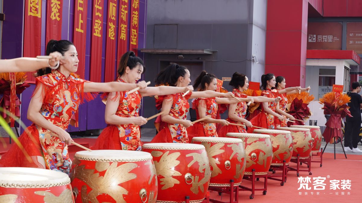 伴隨著開場鼓舞表演,開業儀式拉開帷幕。身著紅衣的鼓手一邊舞動一邊擊鼓。鼓點韻律振奮人心,每一次敲擊,都彰顯出梵客新店開張的豪邁與氣魄。
