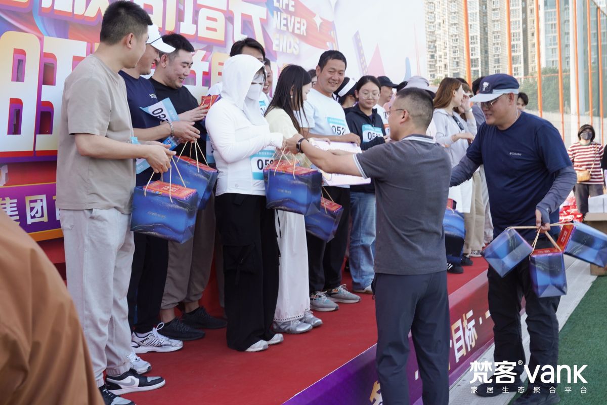 運動會的舉辦離不開公司的支持與關懷,讓大家勇于用行動踐行夢想,不斷超越自我、挑戰未來。汗水與拼搏后,迎來頒獎儀式。由梵客集團副總裁/梵客家裝總經理任琳女士、梵客家裝城外誠店負責人張迪先生、梵客優裝負責人徐飛先生分別向獲勝團隊頒發獎品。