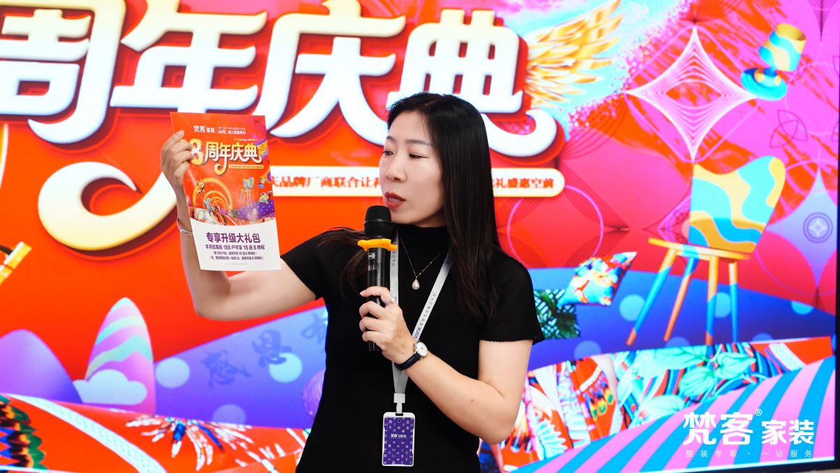 梵客集團副總裁/梵客家裝總經理任琳女士,也為大家帶來了《18周年慶典專享升級大禮包》,內容涵蓋簽約優惠、超額滿減、產品升級、企業補貼基金、裝修無憂保險等,將最大的實惠送到業主手中;同時還向大家介紹梵客家裝一直踐行的五好整裝標準、多重保障機制、無憂保障體系等,讓業主朋友安心放心。