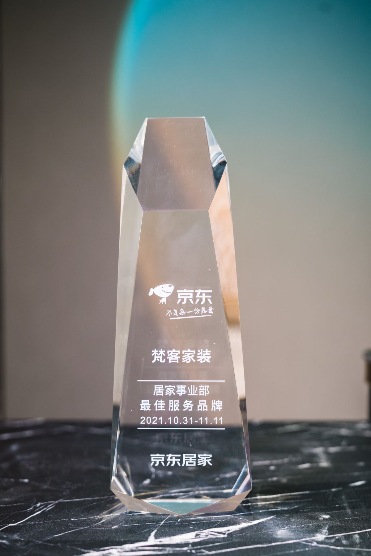 年初,梵客家裝收獲一枚獎(jiǎng)杯,由【京東居家】頒發(fā)的最佳服務(wù)品牌獎(jiǎng)。沉甸甸的“水晶”獎(jiǎng)杯在燈光下閃爍熠熠光彩,仿佛是對(duì)過(guò)去一年成就的肯定,也是對(duì)未來(lái)的期待與激勵(lì)。