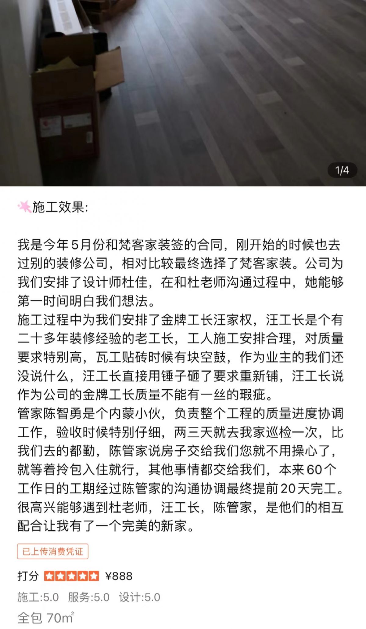 好口碑,有圖有真相,來自梵客業(yè)主的真實(shí)反饋