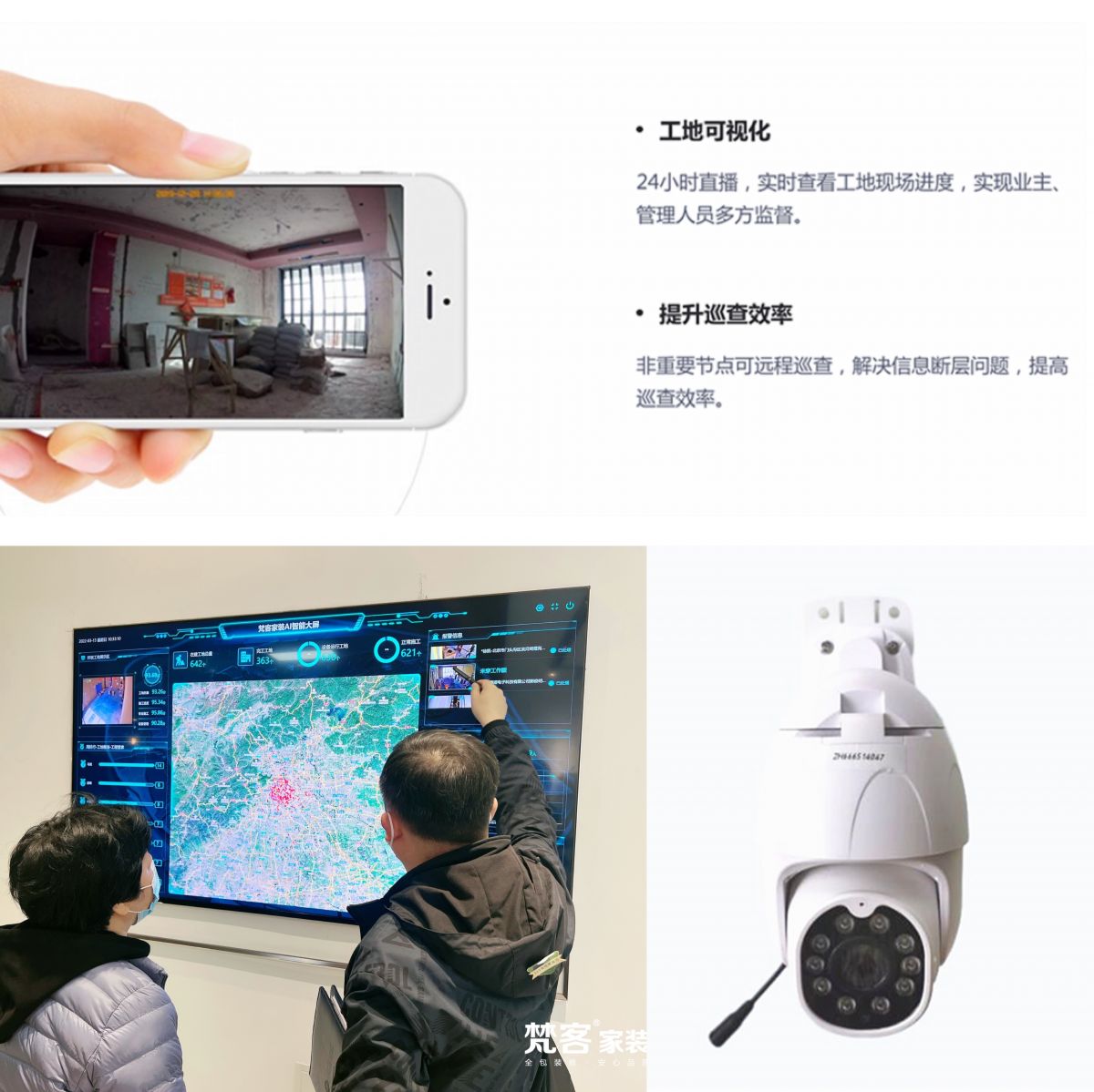 此外,梵客家裝的工地AI化系統(tǒng),還解決了業(yè)主沒時間去工地的問題。AI監(jiān)理設(shè)備,自帶可旋轉(zhuǎn)云臺,內(nèi)置GPS定位,有1300萬高清像素,140°廣角鏡頭,可以用手機(jī)直接觀看,而且還可以錄像回放,定時拍照,實(shí)現(xiàn)24小時工地可視化,即便業(yè)主不在現(xiàn)場,也能全方位了解自家裝修進(jìn)度及狀況,遇到問題及時和設(shè)計師或工長溝通。