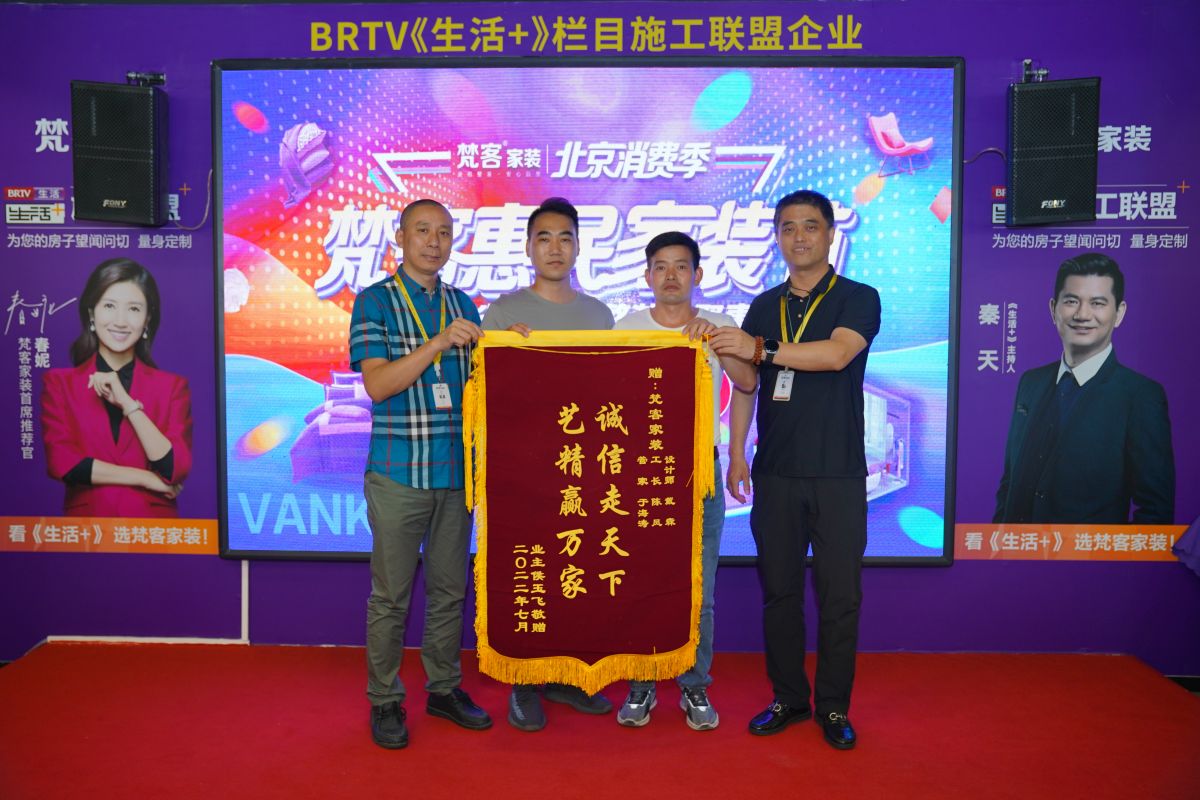活動當(dāng)天,已經(jīng)裝修好的業(yè)主冒著高溫來到現(xiàn)場送來錦旗,表示:“對梵客家裝的服務(wù)特別滿意,裝修結(jié)果要比預(yù)想的好很多,最滿意的是梵客的專業(yè)、省心、周到!”