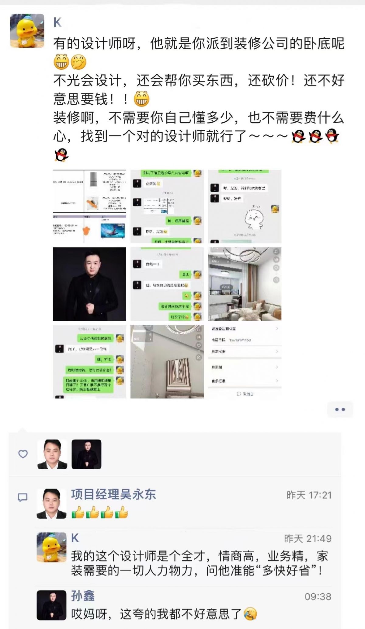 業主的家人不在身邊,設計師24小時在線,并采用線上溝通模式,解決裝修困難,讓全家都滿意。