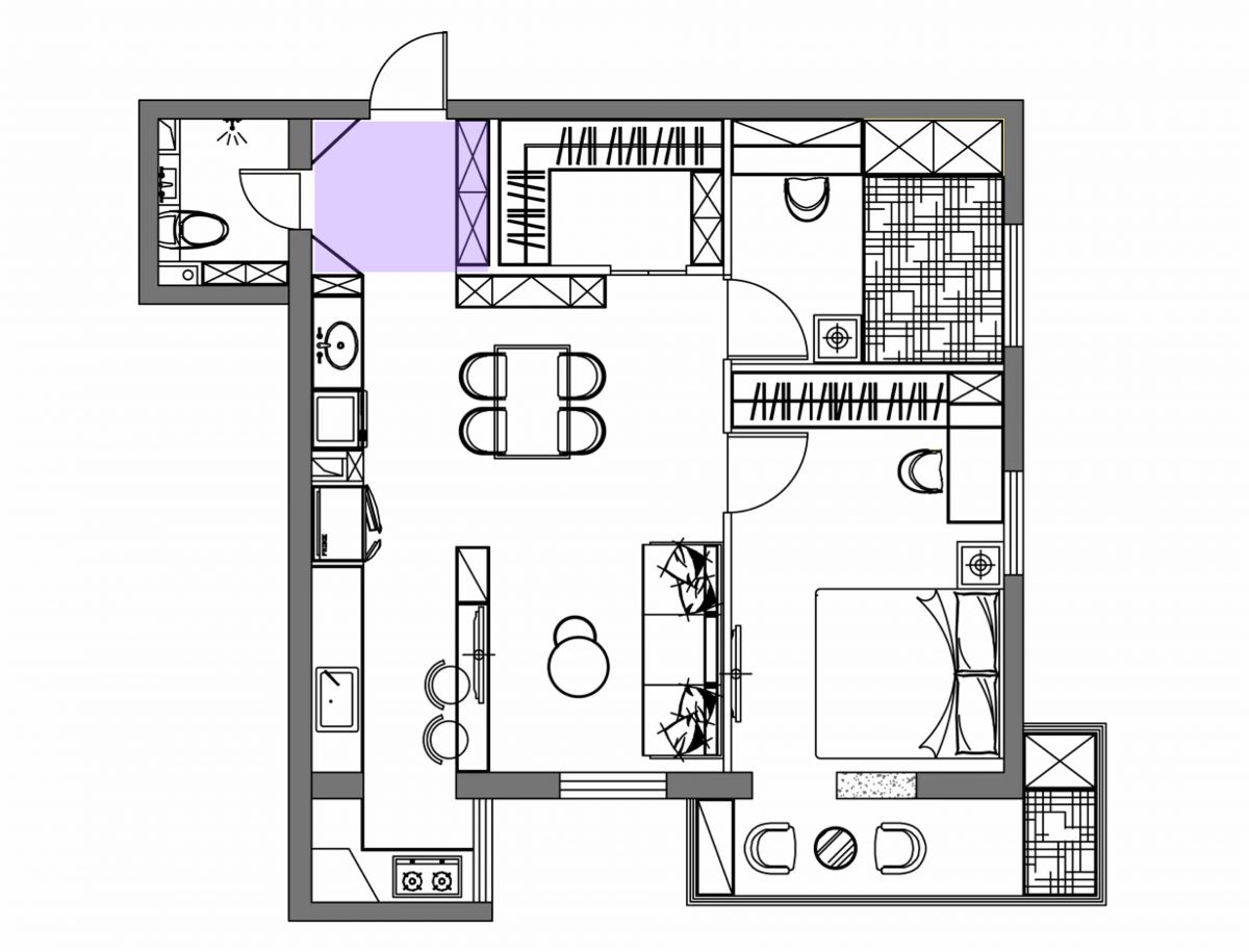 老戶型,有很多規劃不合理的地方,比如空間利用率不足、采光差、儲物空間欠缺等。設計師張曉紅重新進行布局,通過以下對比圖可看出: