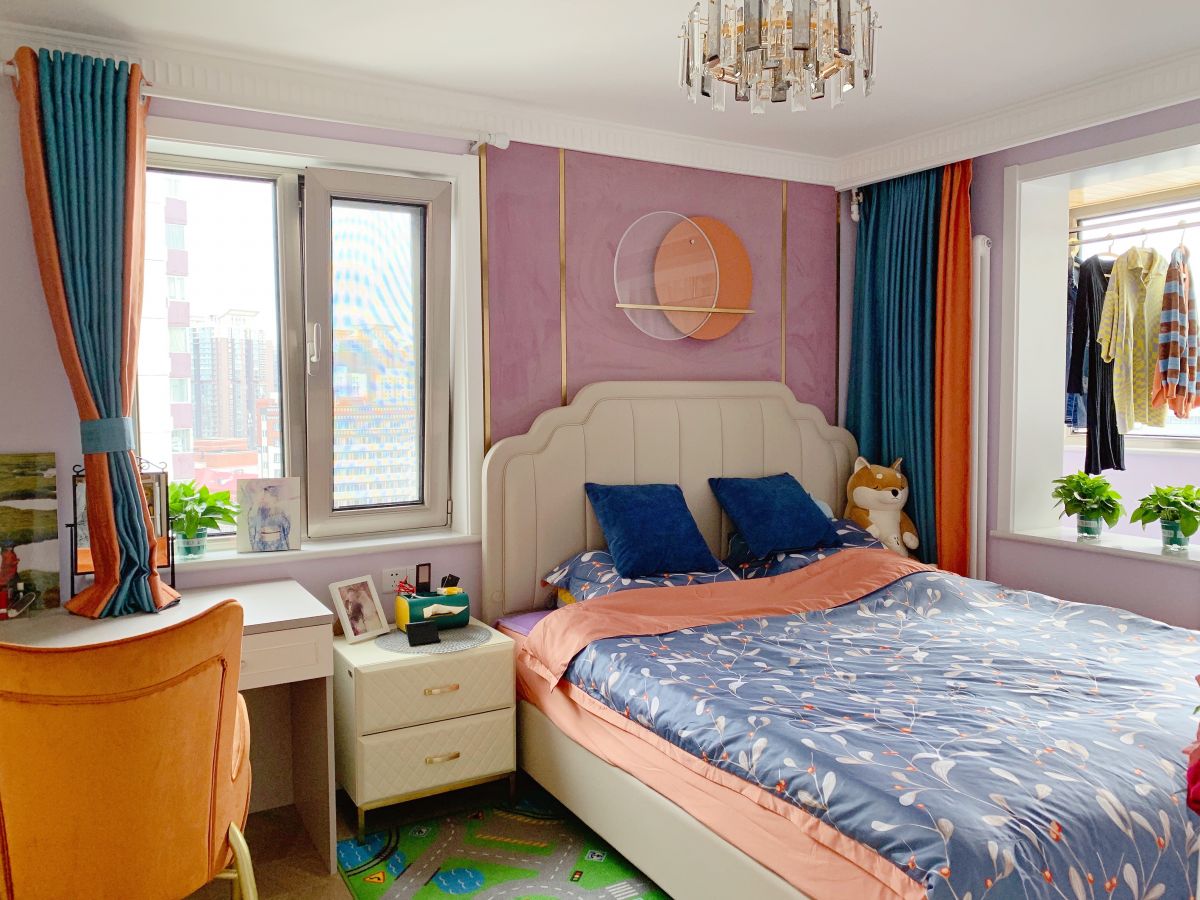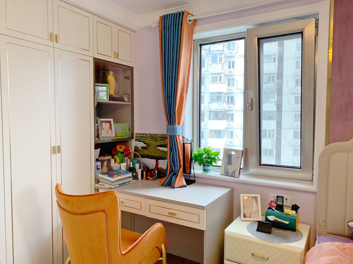 次臥,是之前主臥的一部分,它的另一部分給了衣帽間。小空間有小空間的設計方式,但是功能區一樣不少,這就是定制家具的優勢。