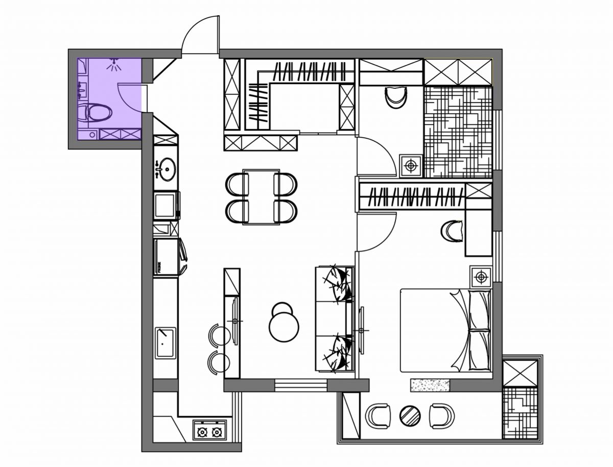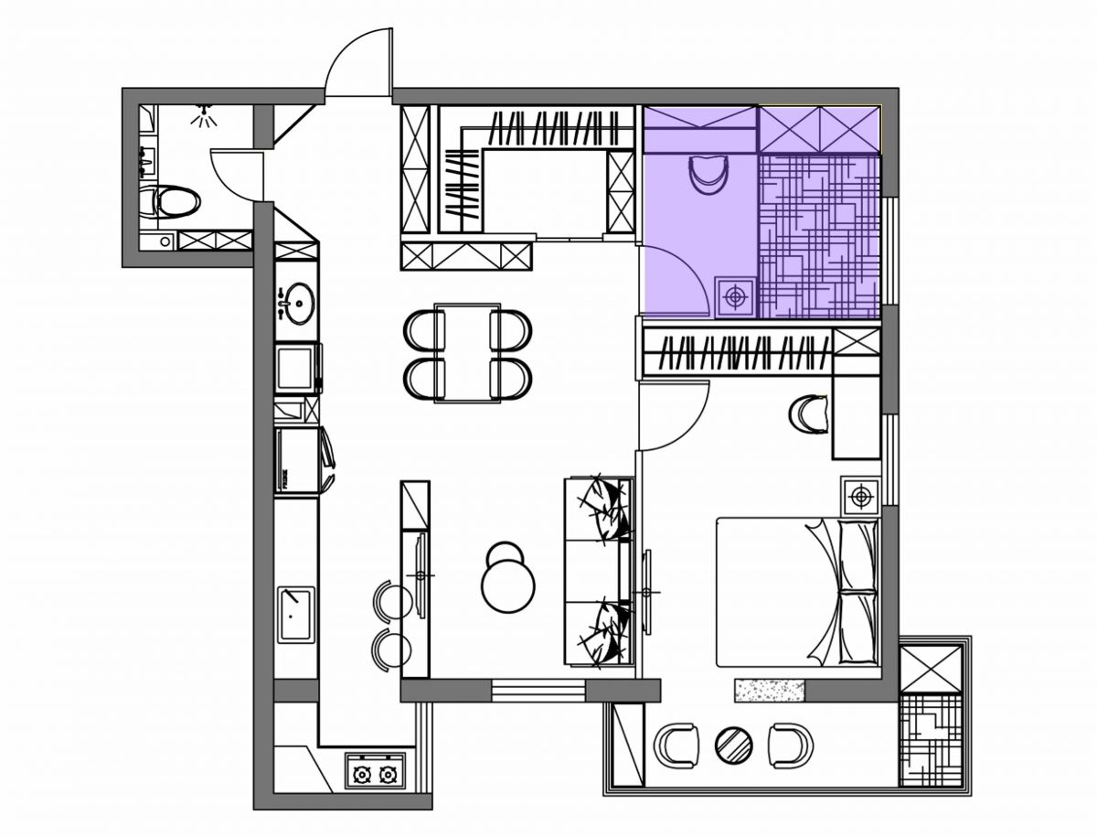由餐邊柜旁邊的小門進去,便是擠出來的衣帽間。
