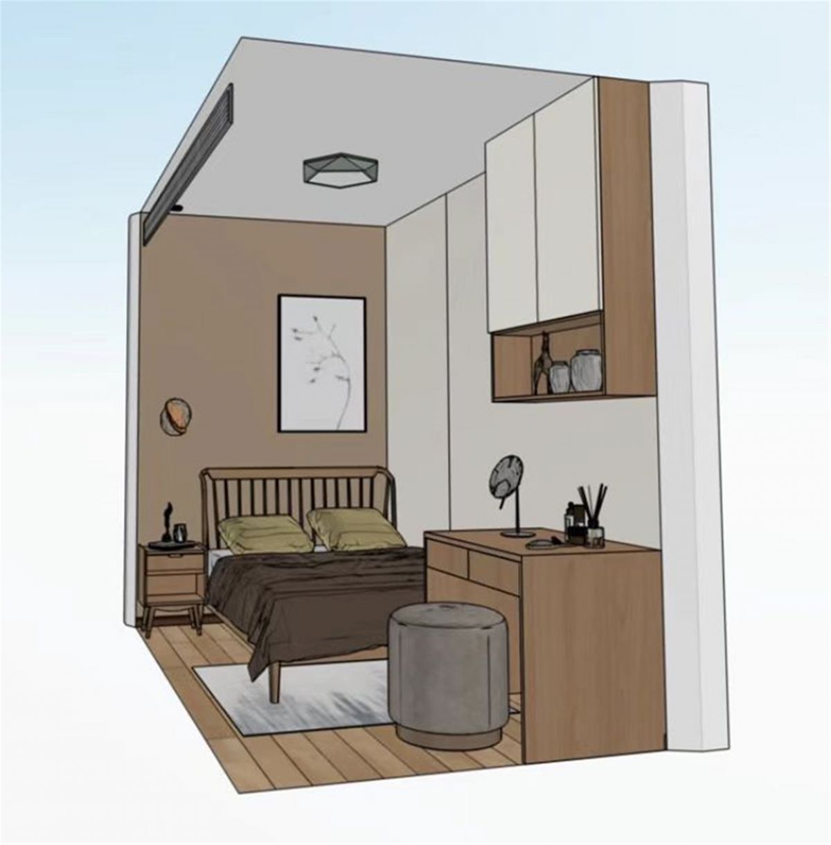整體設(shè)計為簡約原木風,淺色系,令空間看上去更為明亮通透,還能體現(xiàn)溫馨的居家氛圍。