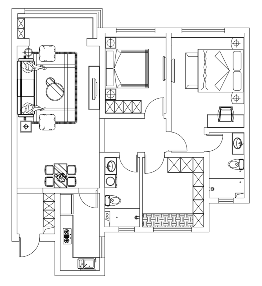 這是一套3室2廳1廚2衛的新房,房型基本空間格局比較規整,動靜空間(客廳、臥室)劃分合理,結構上沒有做改變。