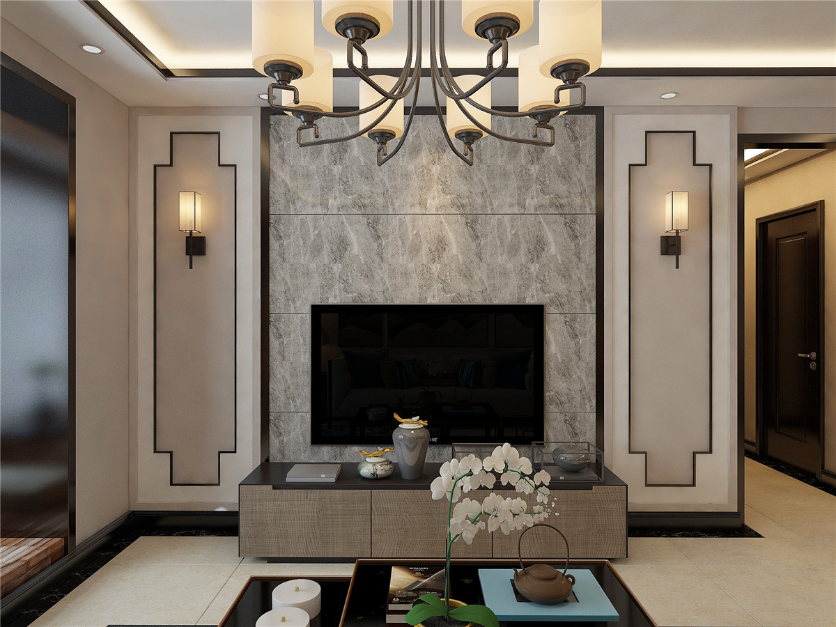 新中式風格以中國傳統古典文化作為背景,紅木、青花瓷、紫砂茶壺及一些紅木工藝品等都體現了濃郁的東方之美。裝飾材料會選絲、紗、織物、壁紙、玻璃、仿古瓷磚、大理石等。飾品多為瓷器、陶藝、中式窗花、字畫、布藝以及具有一定含義的中式古典物品等。
