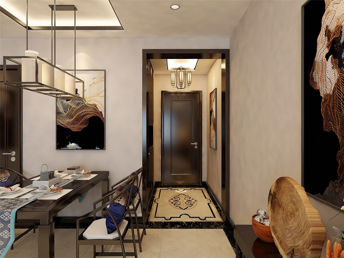 新中式風格非常講究空間的層次感,在需要隔絕視線的地方,使用中式的屏風或窗欞、中式木門、工藝隔斷、簡約化的中式“博古架”,展現出中式家居的層次之美。