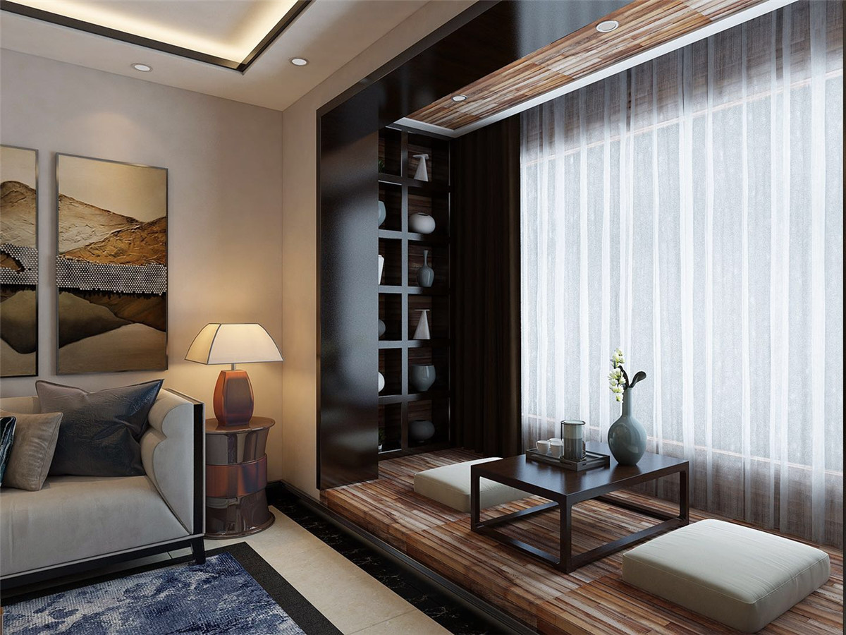 休閑陽臺,色彩搭配上讓空間的寂靜感表現的更為強烈,地面和頂面用一樣的木色,整體和諧。雅座榻榻米,有格調生活的品質感,也是慵懶情懷的體現。