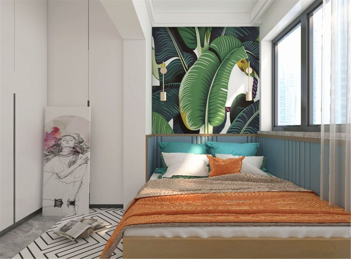 夫妻二人居于主臥,床鋪采用地臺形式設計,看似一張床,下面卻是強大的儲物空間,可以放些平日不常用的東西。利用床箱收納,在小戶型非常實用。正所謂左右不足,上下來湊。